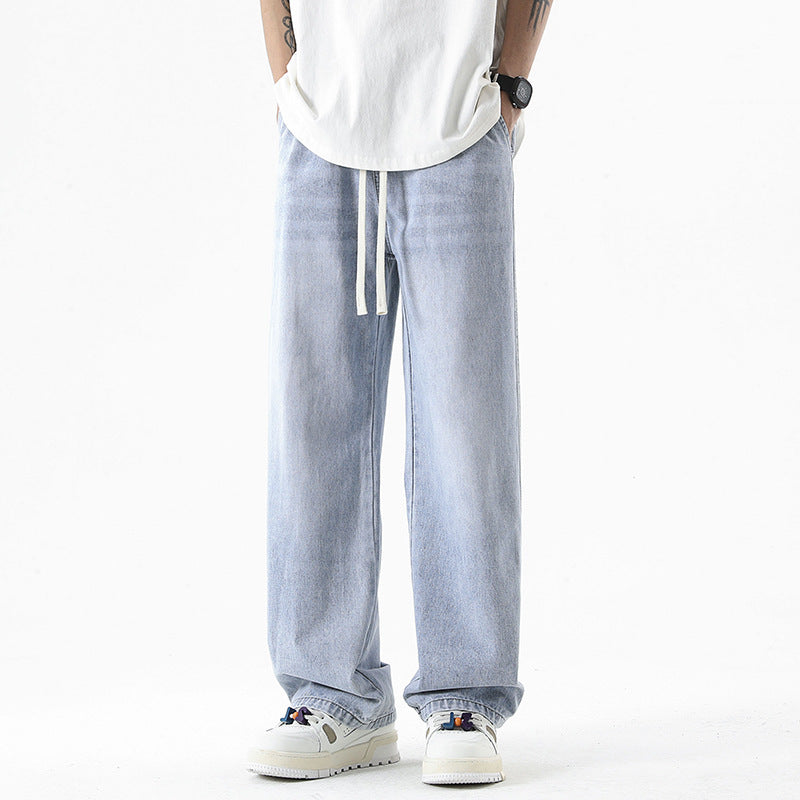 Men's Loose Straight Elastic Waist Wide Leg Casual Trousers