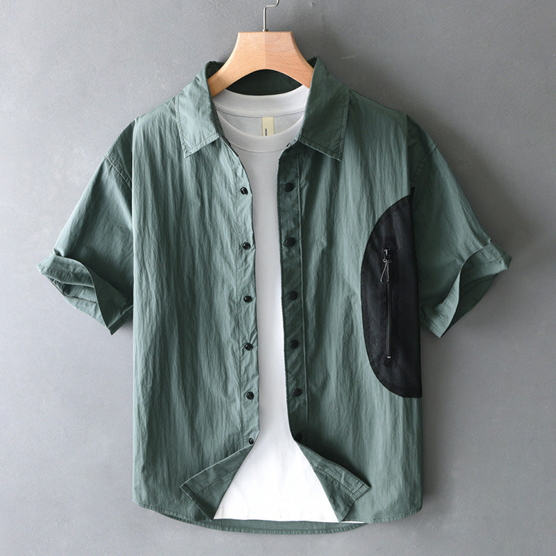 Mountain Outdoor Color Matching Short Sleeve Shirt Men's American Style